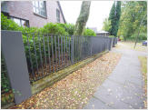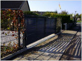 Das Einfahrtstor besteht aus 1 freitragenden Schiebetorflügeln der mit senkrechten Flachstäben ausgefacht ist.