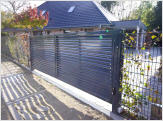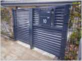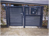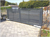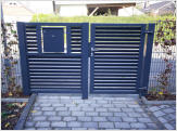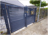 Das Einfahrtstor besteht aus 2 Torfügeln die mit Alulamellen ausgefacht sind.