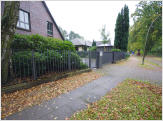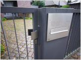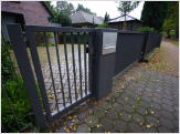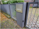 Eingangspforte mit festem Seitenteil und Briefkastenanlage.